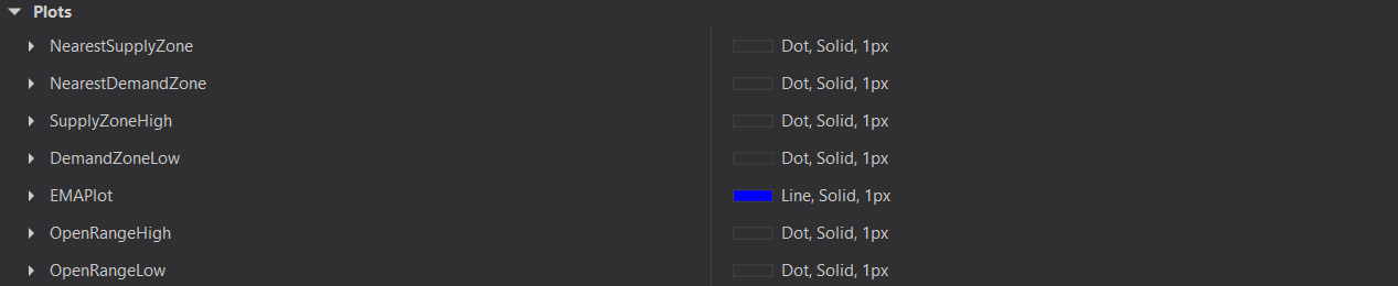 * Used internally by the ZoneVue Pro automated strategy to plot the values of the nearest supply zone high and low, nearest demand zone high and low.