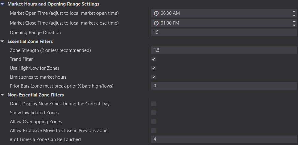 These settings within the strategy are identical to the indicator only settings. Please see the indicator settings section for a detailed explanation of each option