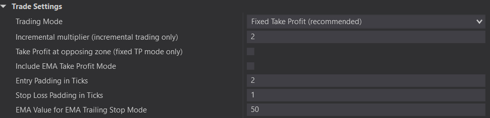 * This setting controls the amount in ticks that you wish to have your order entry price set at above a demand zone or below a supply zone